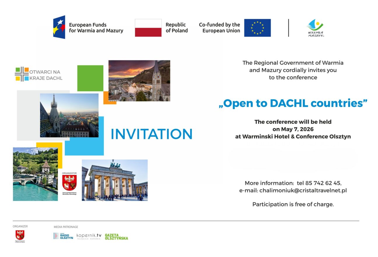 Die Veranstaltung „Open to DACHL“ richtet sich an Vertreter kleiner und mittlerer Unternehmen (KMU) aus der Region Ermland-Masuren, die an einer Expansion auf deutschsprachige Märkte – Germany, Austria und Switzerland – interessiert sind.