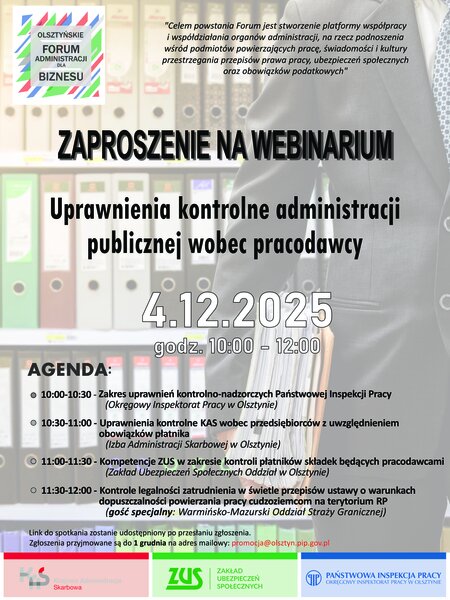 Link do spotkania zostanie udostępniony po przesłaniu zgłoszenia. Zgłoszenia przyjmowane są do 1 grudnia na adres mailowy: promocja@olsztyn.pip.gov.pl